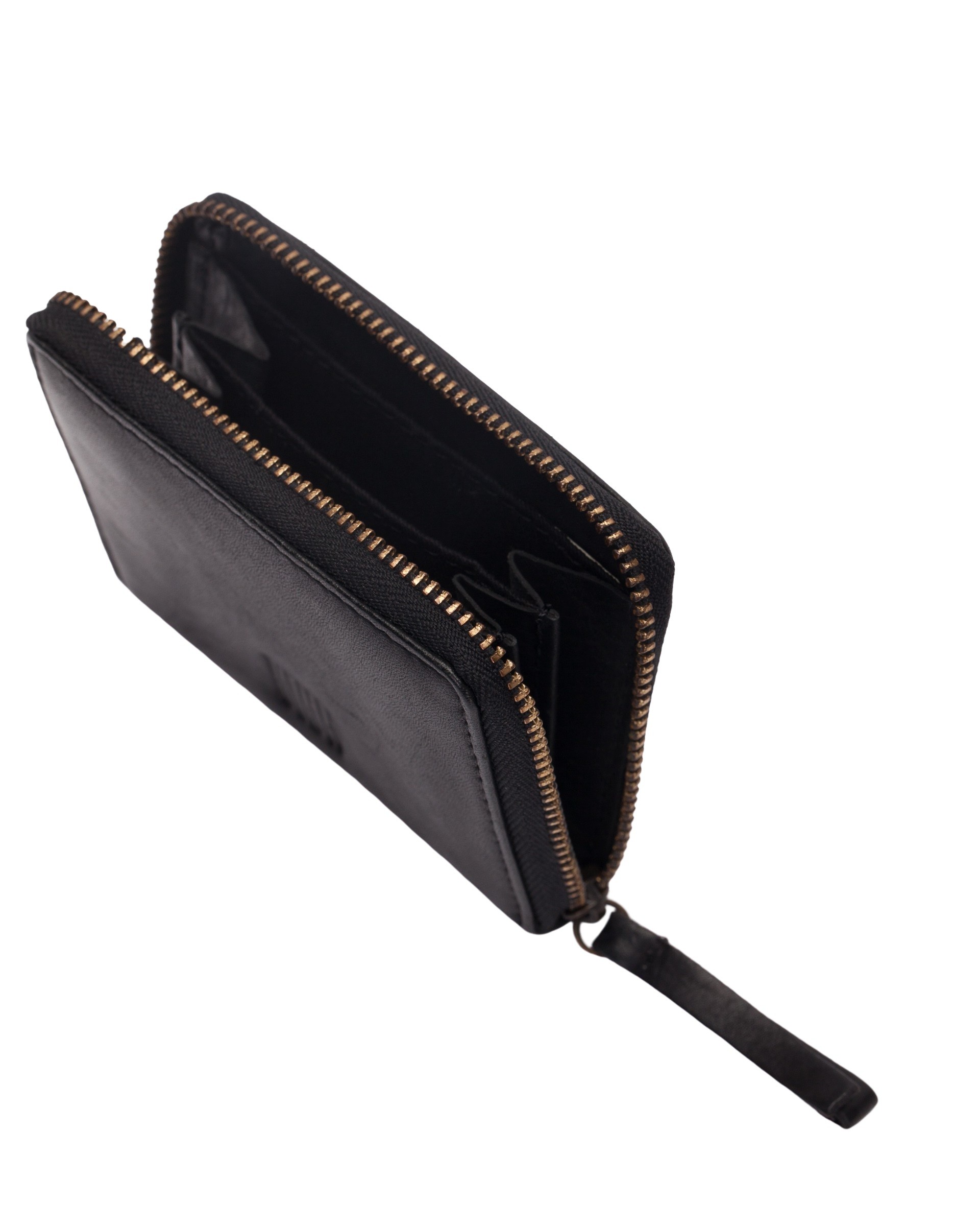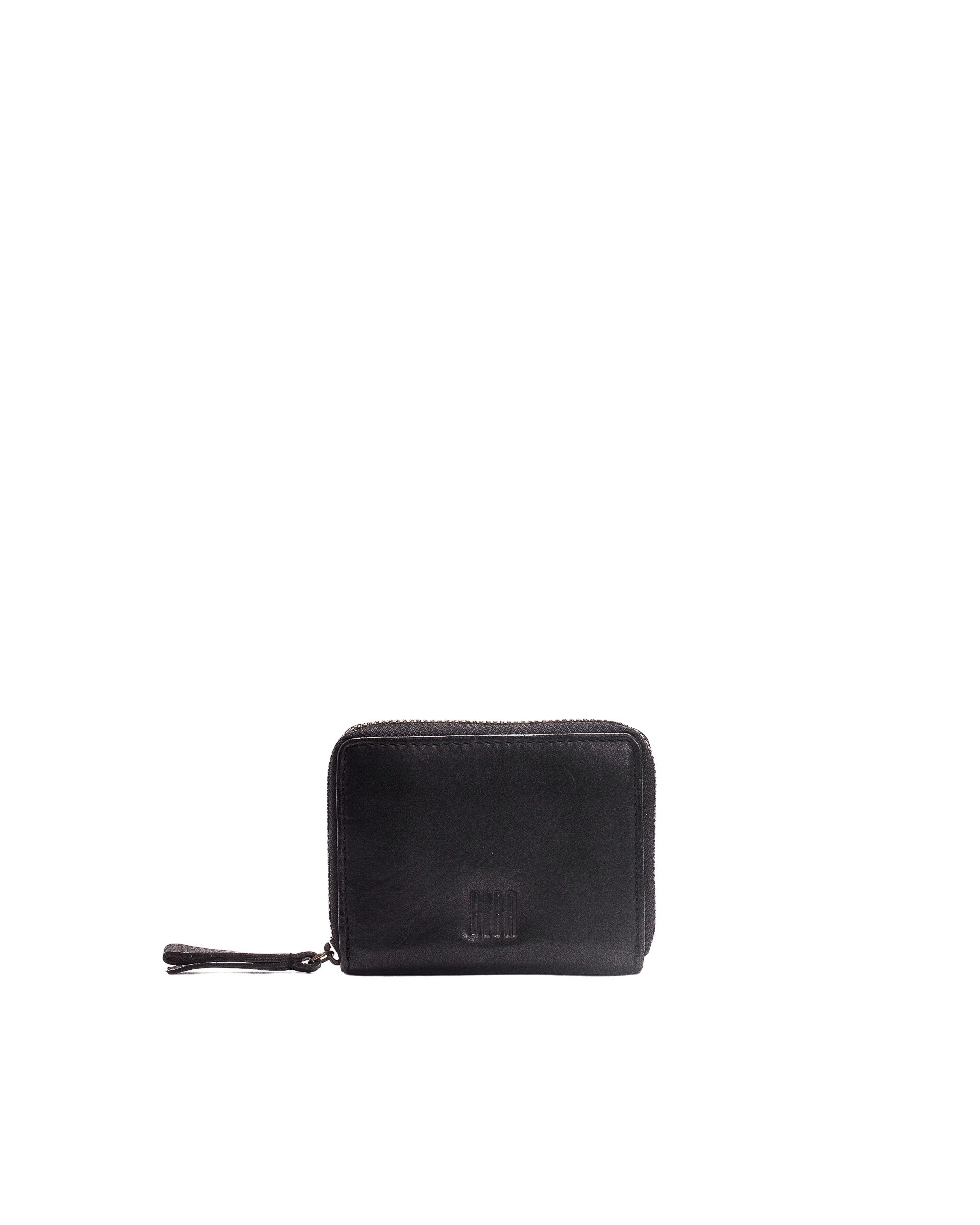 Washed, and vegetable-tanned cowhide leather small wallet. Zip closure, and cards compartments.