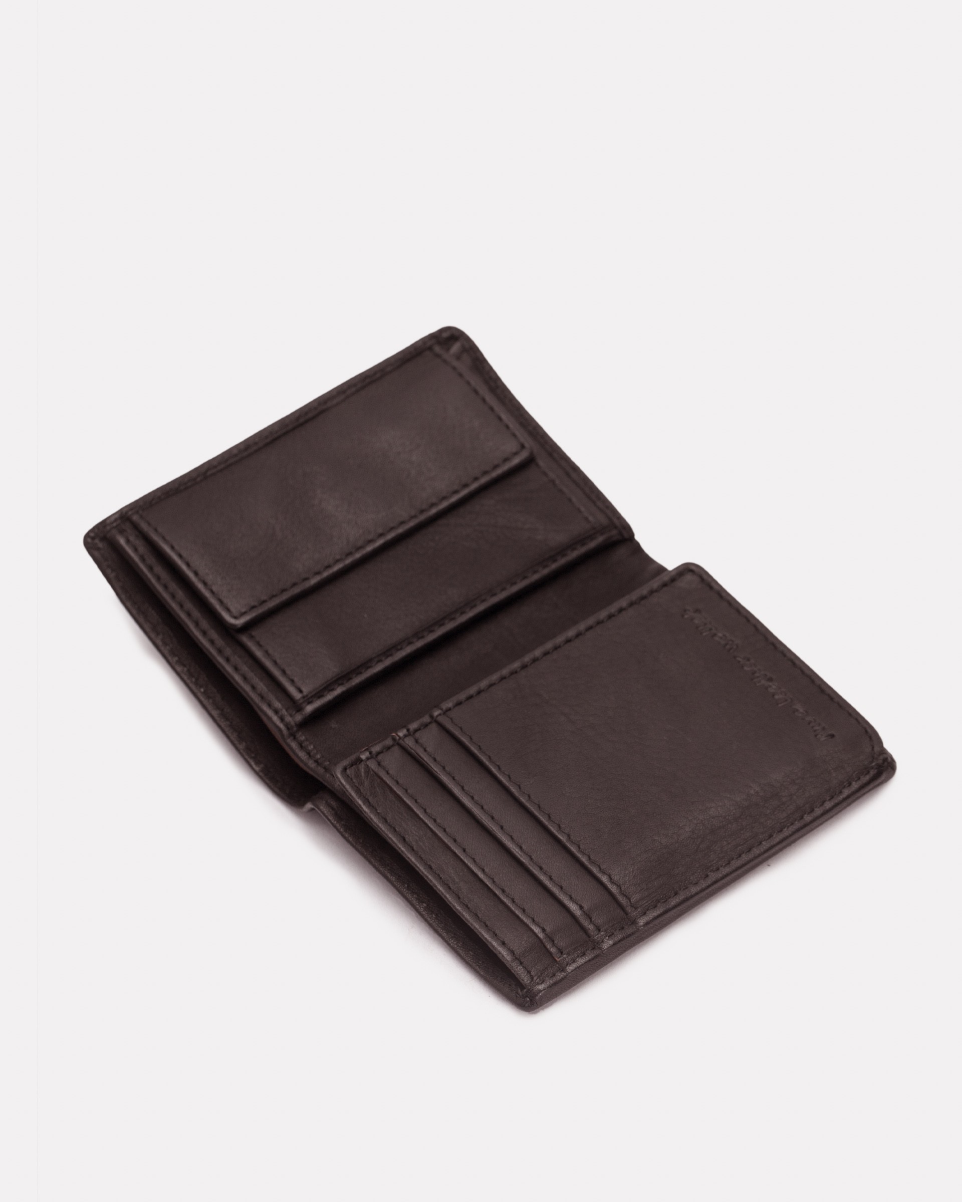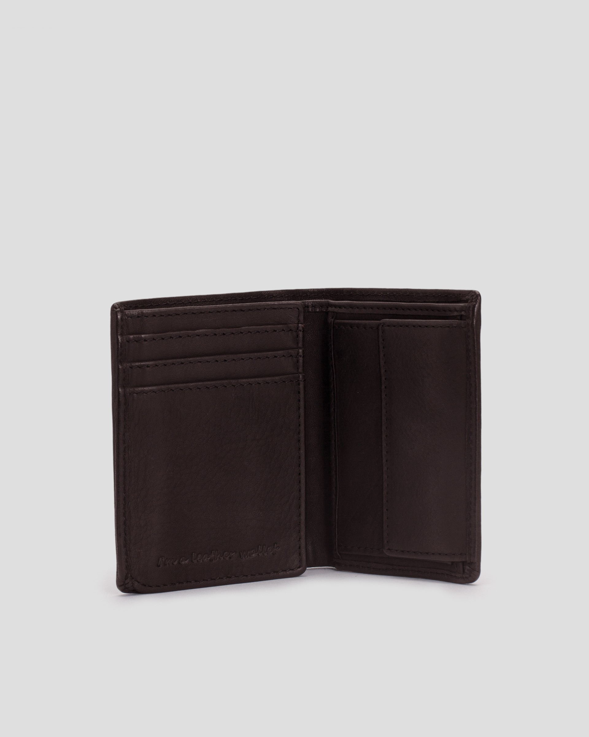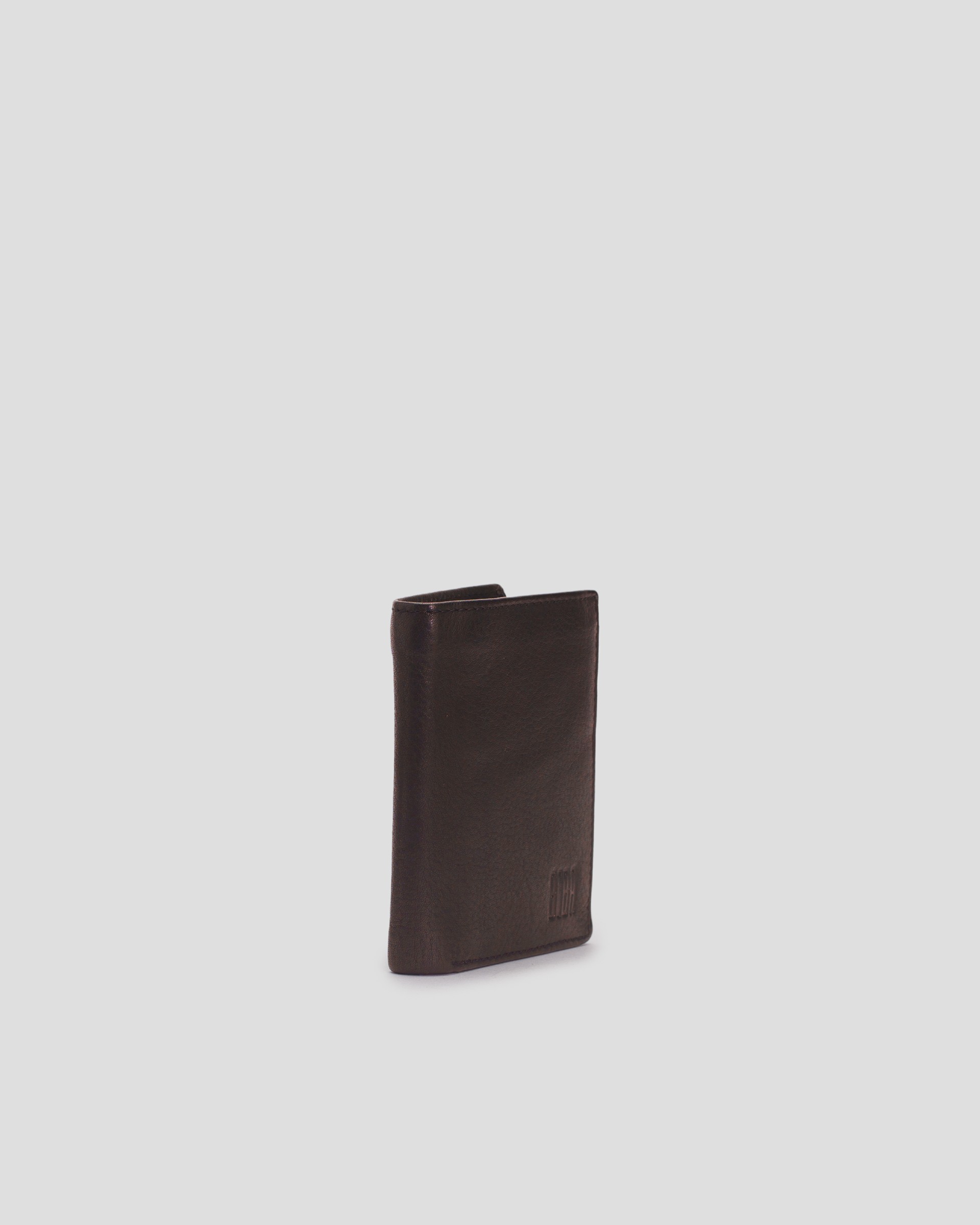 Washed, and vegetable-tanned cowhide leather vertical wallet.