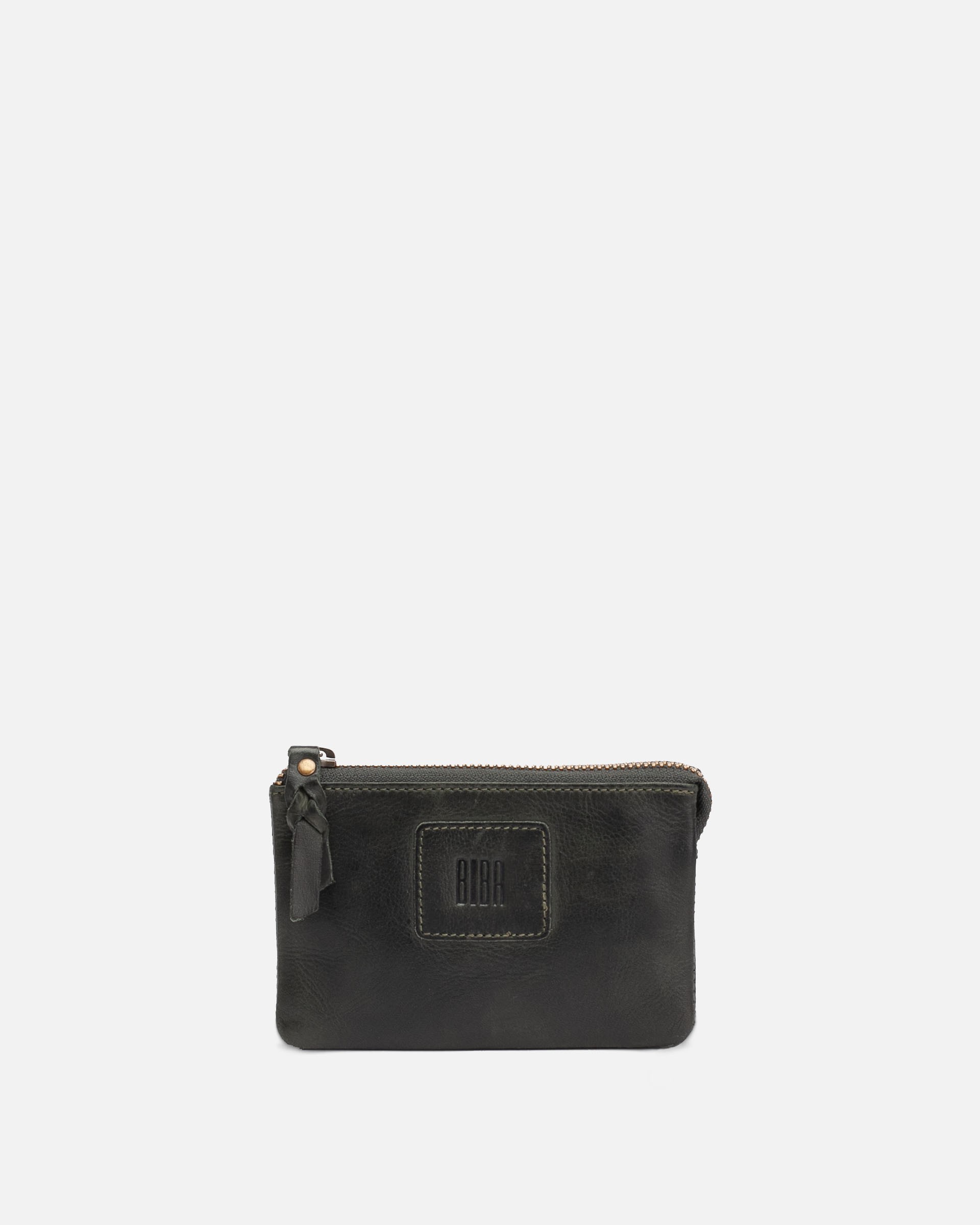 Washed, and vegetable-tanned cowhide multiple zip wallet.