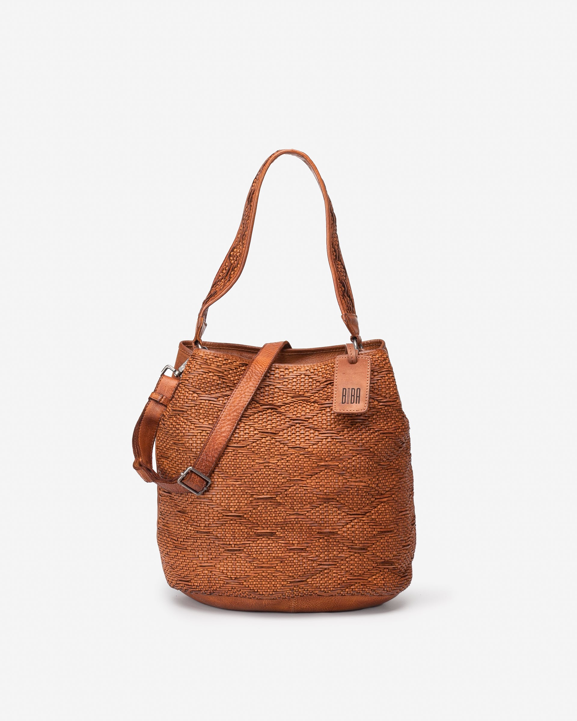 水洗牛皮水桶包. 採用植鞣和手工編織製成。