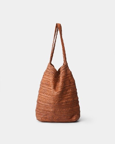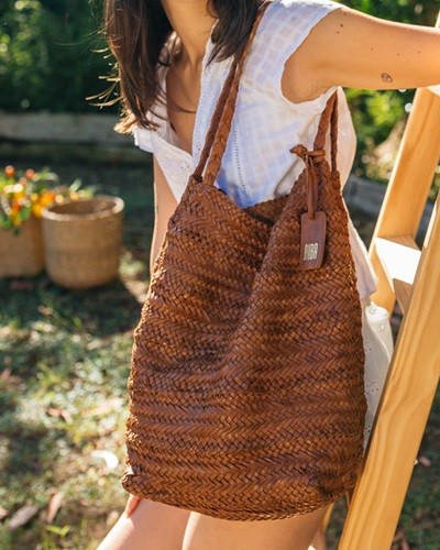 經水洗、植物鞣製及手工編織的單肩包。