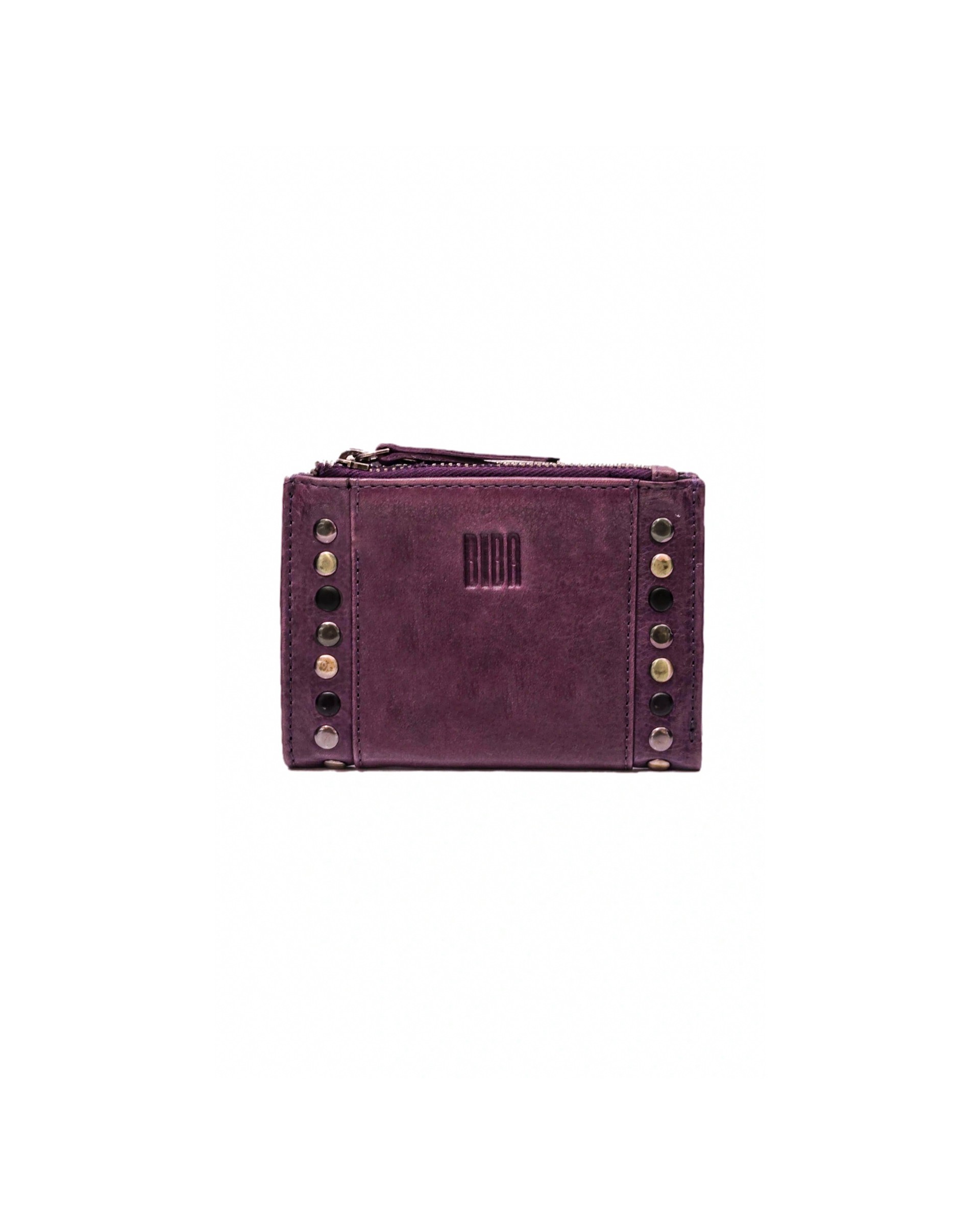 正反面飾有鉚釘裝飾水洗牛皮錢包