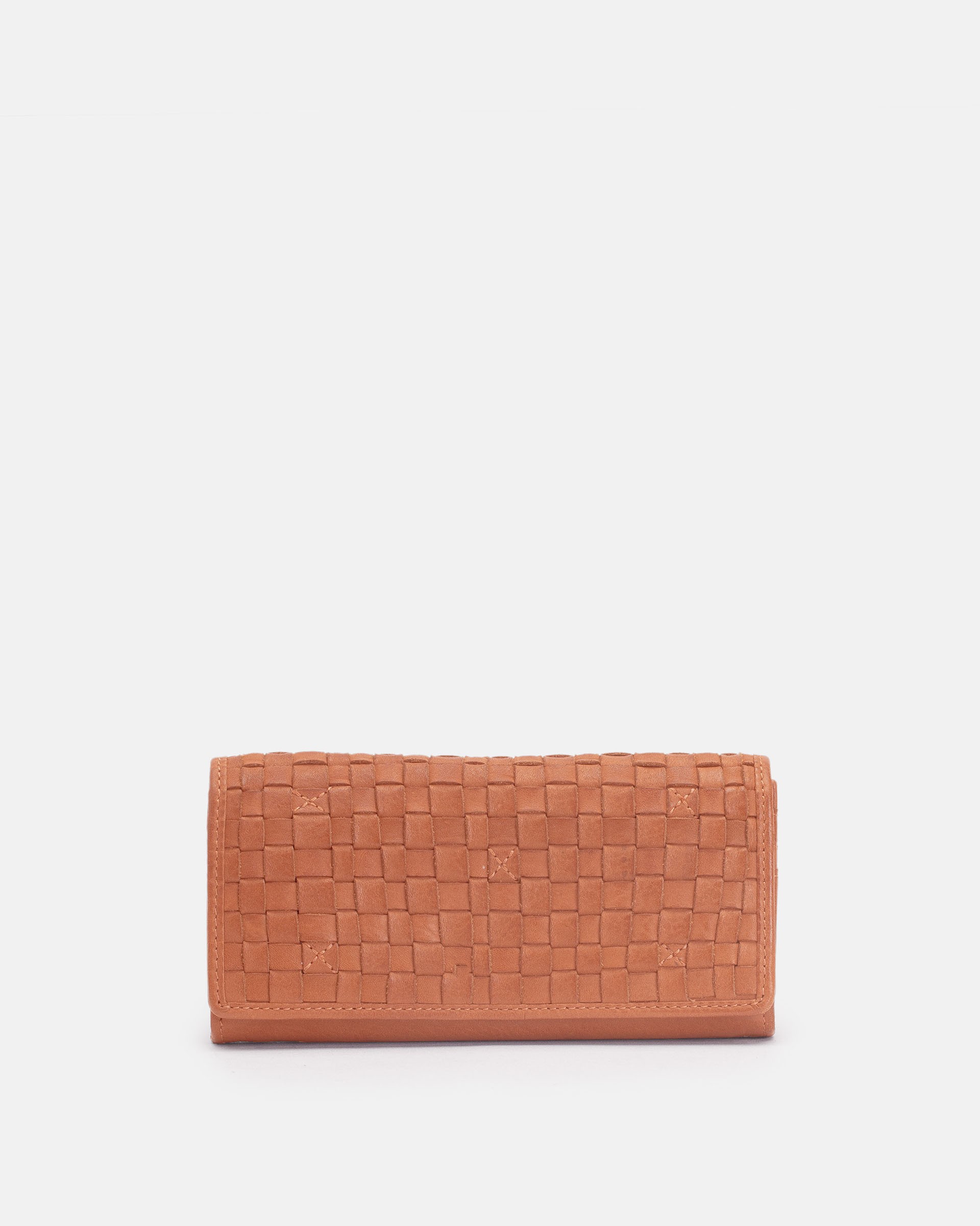 水洗牛皮、植物鞣製、手工編織的大錢包。