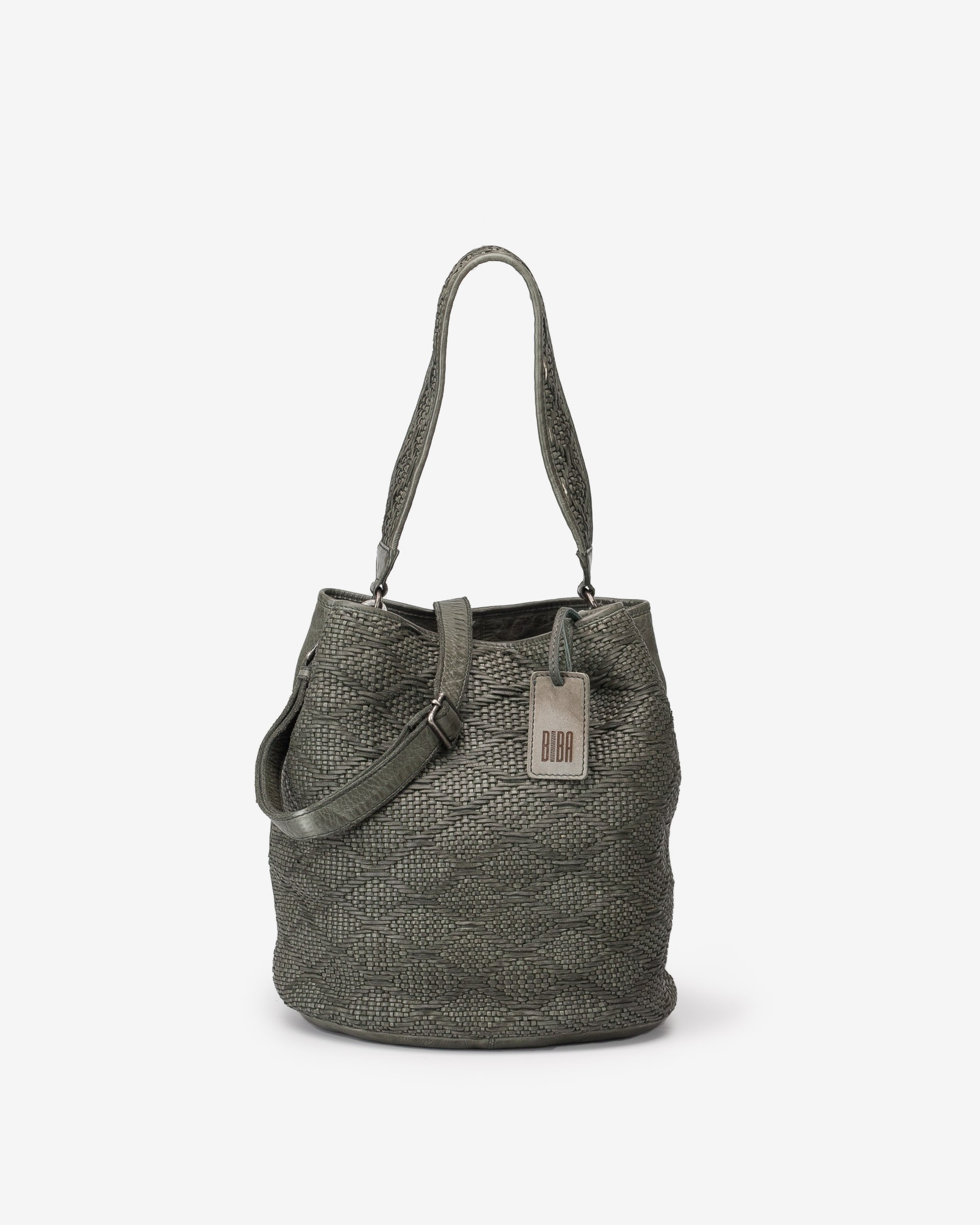 水洗牛皮水桶包. 采用植鞣和手工编织制成。