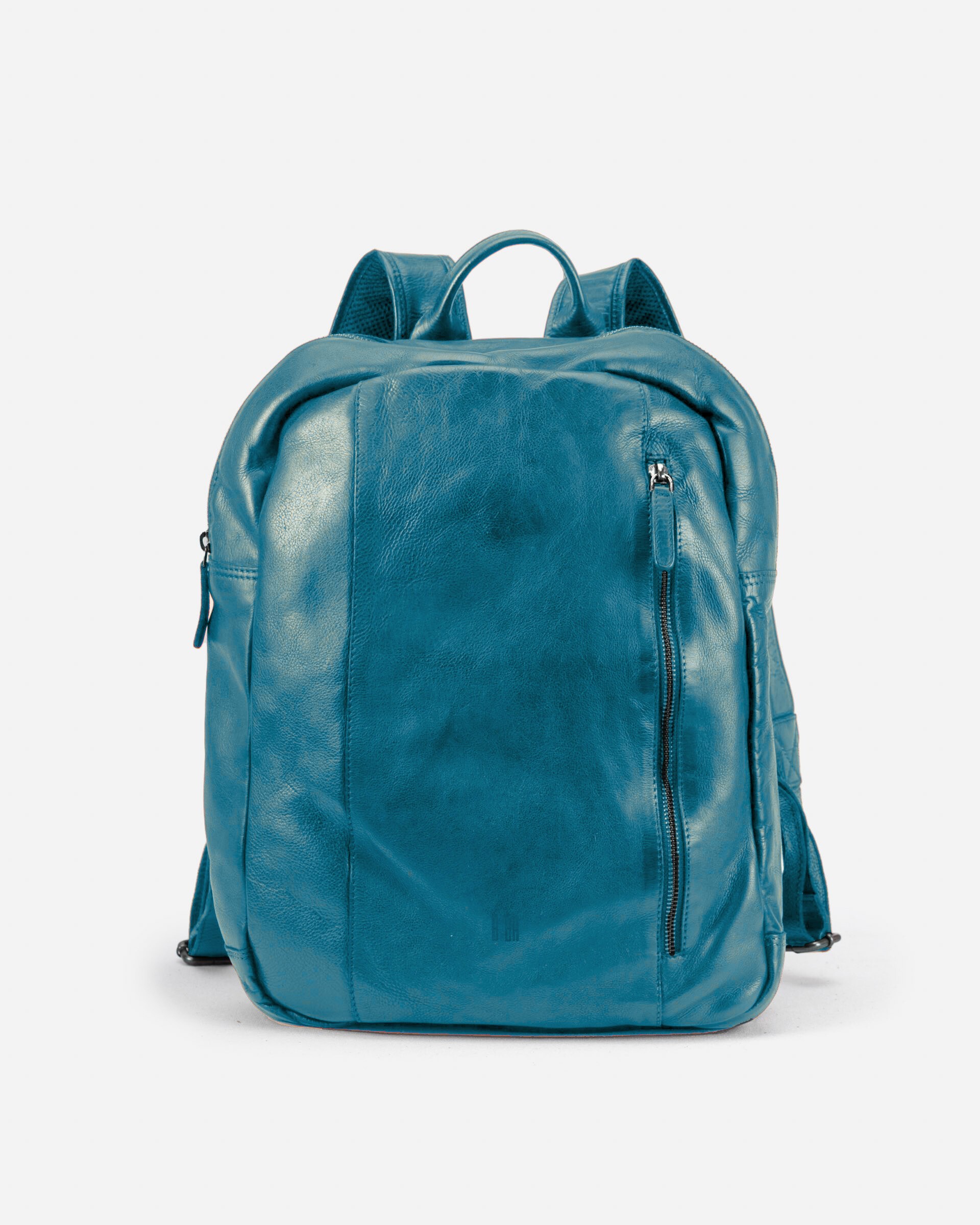 水洗植鞣牛皮背包。