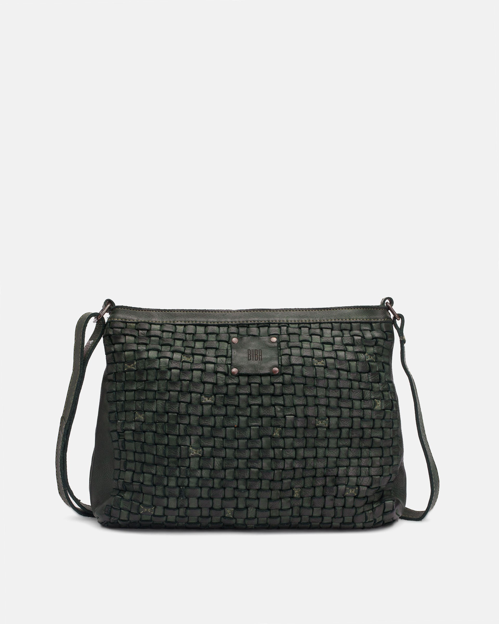 水洗牛皮、植物鞣制和手工编织的斜背包。