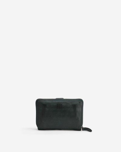 拉链闭合,设有卡片、纸币及零钱隔层。
