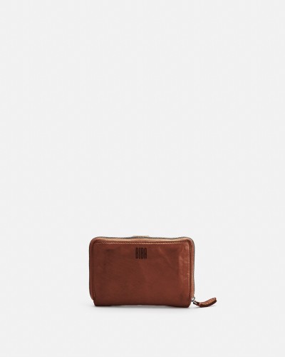 拉链闭合,设有卡片、纸币及零钱隔层。