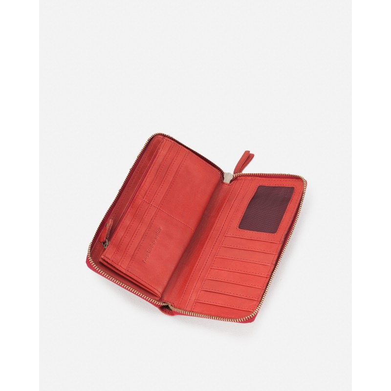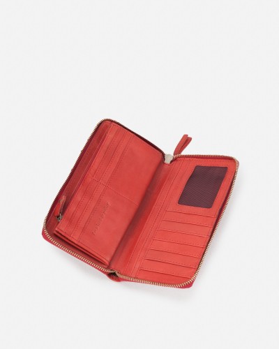 拉链闭合,设有卡片、纸币和硬币隔层.