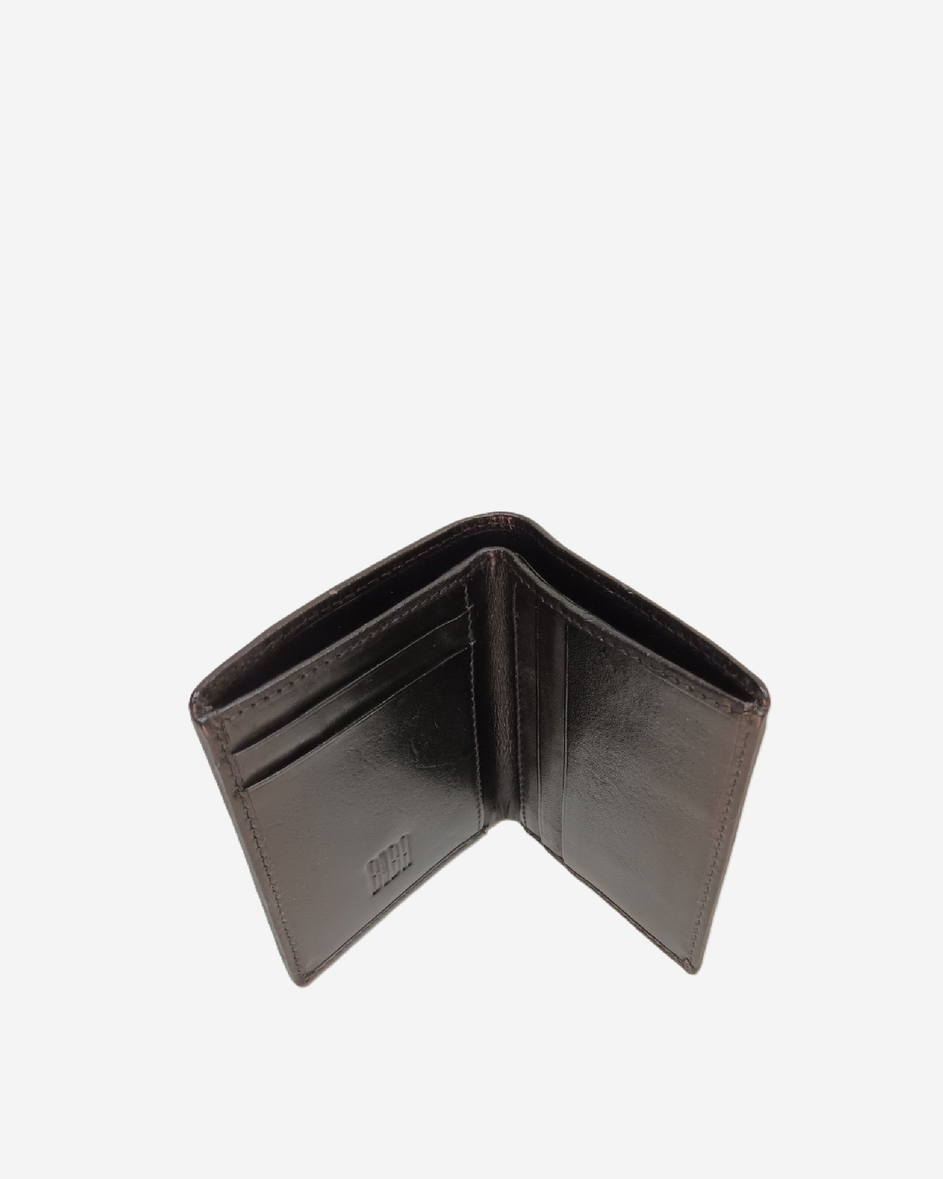 天然皮革竖款钱包,正面有缝线细节。
