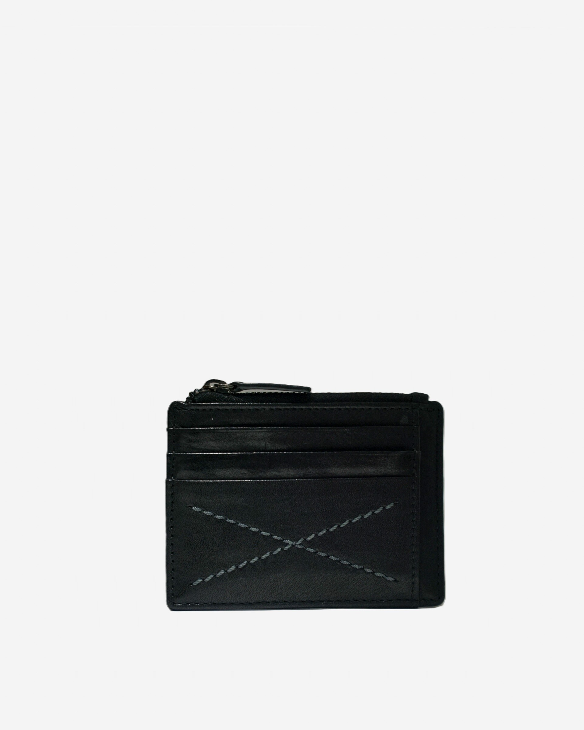 贺维 系列 咭片夹. 天然皮革卡夹,正面有缝线细节。